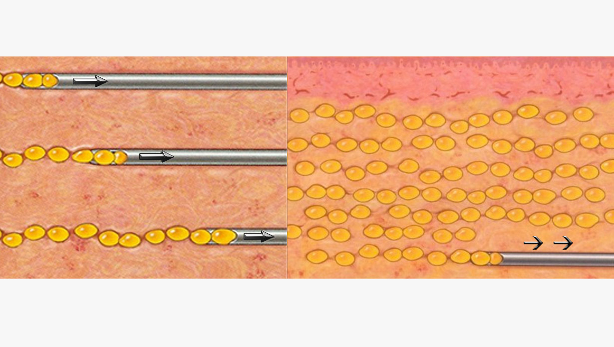 The mechanism of fat survival, often referred to as the take rate, relies entirely on essential for the cells to establish a new blood supply and survive. In the immediate period following injection, the fat cells that are placed near healthy, oxygenated tissue can survive through simple diffusion of nutrients. However, long-term survival requires neovascularization—the growth of new blood vessels from the recipient site into the grafted fat tissue. This process is actively supported by growth factors present in the transplanted fat and the surrounding tissue. Placing the fat in thin threads, rather than thick clumps, maximizes the ratio of the cell surface area to the volume, thus increasing the chance that all cells are close enough to the host tissue to initiate this life-sustaining process. Poor blood supply due to overly dense packing or placement in scarred tissue is the single biggest factor leading to fat necrosis and subsequent reabsorption or lump formation.